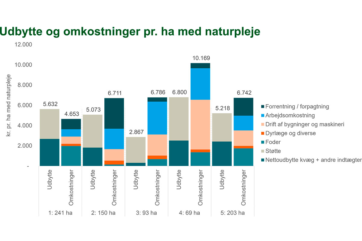 Nøgletal fra de fem case-bedrifter viser meget tydeligt, at tilskuddet til naturpleje er nødvendigt, og at man ikke skal forvente at kødproduktionen dækker ret meget af omkostningerne ved naturplejen. Analysen indikerer dog, at naturforvalterne agerer ud fra en antagelse om, at indtjeningen stiger ved at have flere dyr på arealet.