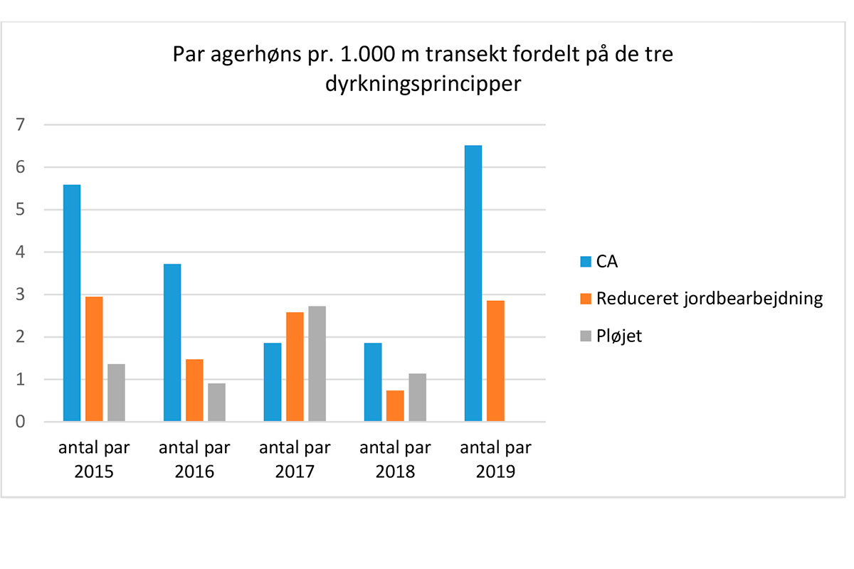 Når der i en årrække på fem år kan konstateres et højt antal agerhøns på de arealer, som dyrkes efter CA-principperne, tyder meget dog på en særlig præference for disse.