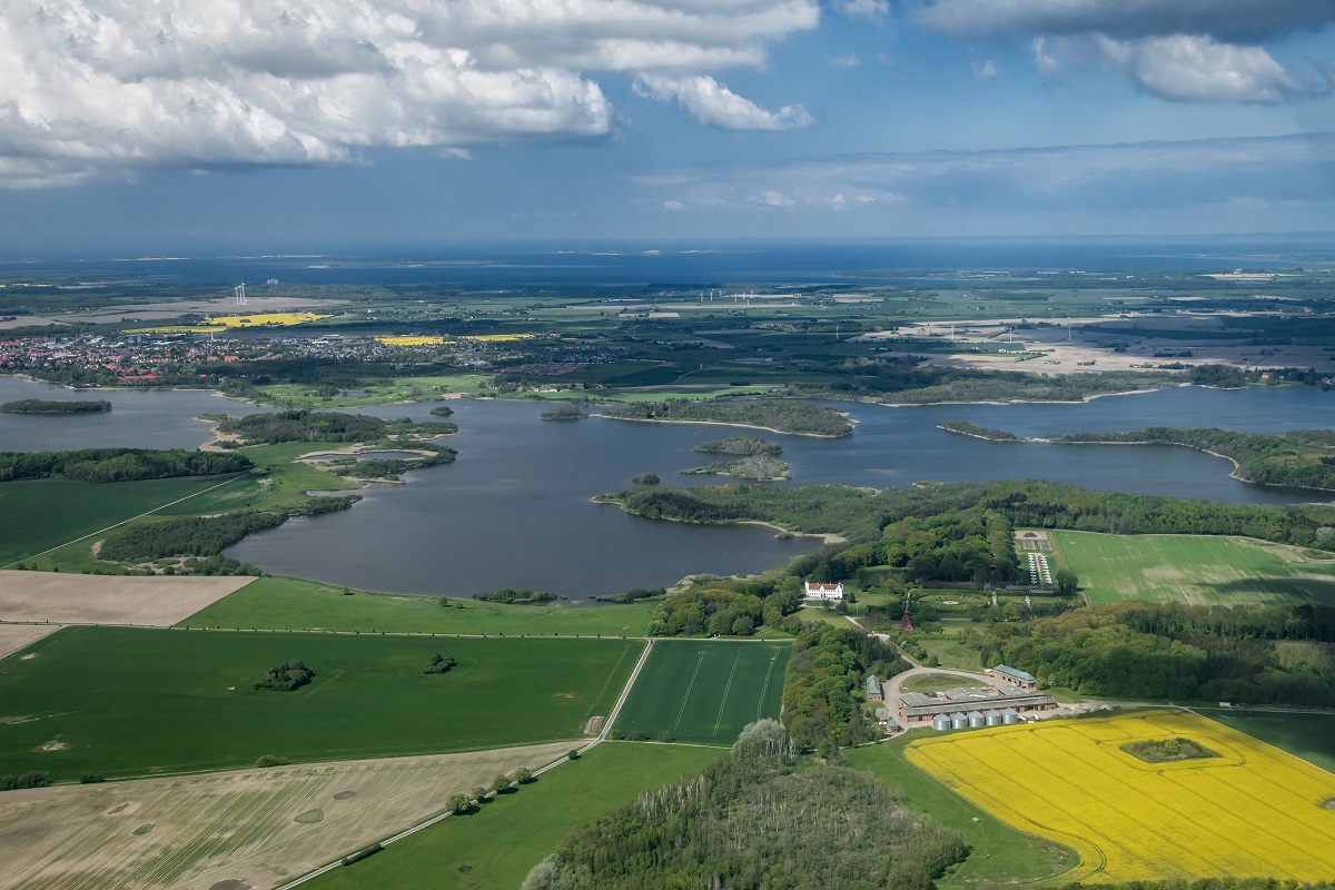 En del af Søholt Storskov set fra luften, hvor sortplettet bredpande lever på høj vegetation i skovlysninger og langs åbne skovstier. Dermed er den både sårbar over for ændret skovdrift og ingen skovdrift. Sommerfuglen er et godt eksempel på, at artsbeskyttelsesregler ikke kan stå alene, og arten vil formentlig forsvinde helt fra Danmark, hvis ikke der tages hensyn til den i driften – hensyn, der ligger ud over det, som den nuværende skovlov kræver af skovejeren. Foto: Lars Laursen/Biofoto/Ritzau Scanpix.