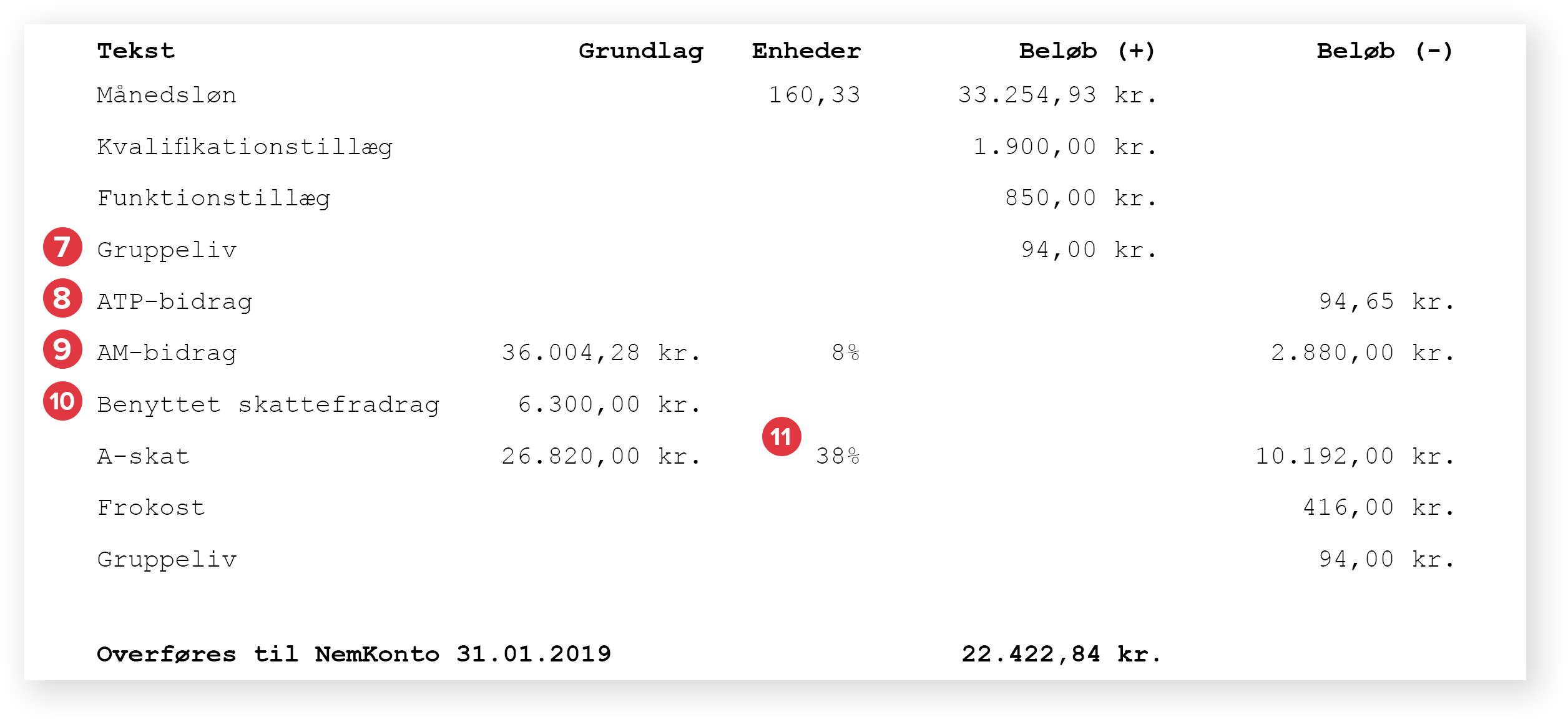 Her ser du et eksempel på, hvordan en lønseddel kan se ud.