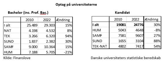 Ændringer i optaget på universiteterne