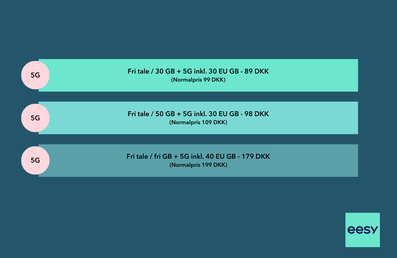 Som kunde hos eesy kommer du på TDC NET, som af Teknologisk Institut er målt til at have Danmarks bedste og hurtigste mobilnet for 10. år i træk (Teknologisk Institut, 2025, Måling af mobilnetværksoplevelse)